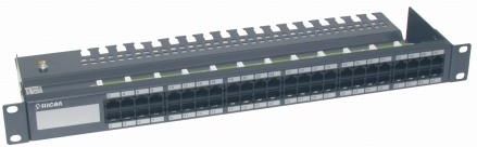 Panel krosowy 1U - rozszywający 48 gniazd RJ45 (w każdym podłączona tylko środkowa para) na 48 par łączówki LSA Wymiary (szer x gł x wys): 19" x 180mm x 1U Kolor RAL7024 (ciemny szary)