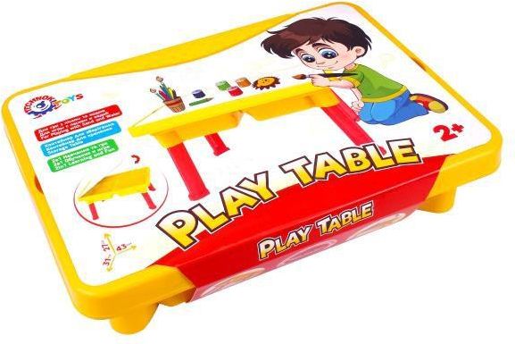 ND17_ZB-144562 Stół do zabawy zabawka Stolik od firmy TechnoK to świetne miejsce na kreatywną zabawę.Stolik to jednocześnie pojemny pojemnik do przechowywania ołówków,markerów, gumek i innych drobiazgów. Stół składa się z korpusu zdwiema wnękami, wieka i nóg. Jej wysokość w zmontowanej formie …