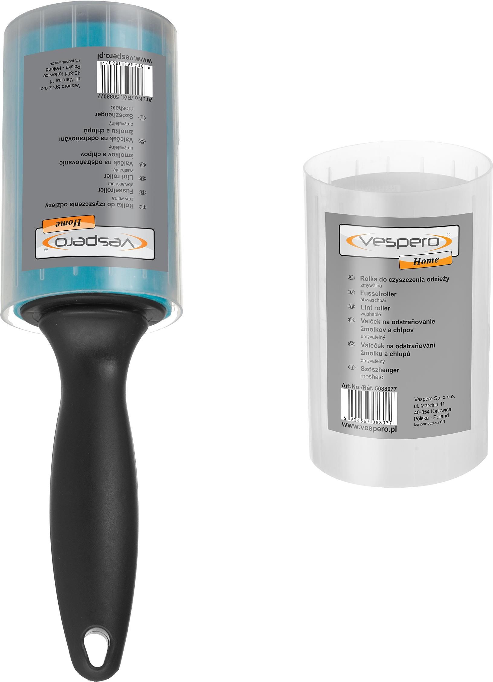 ✅ VESPERO - Rolka do czyszczenia odzieży - zmywalna - do wielorazowego użytku - 10 cm ✨ Informacje podstawowe Rolka wielorazowego użytku, wykonana jest z wytrzymałego tworzywa z silikonową gumą klejącą. Jest mała i poręczna o wysokiej skuteczności działania. Nie pozostawia śladów na czyszczonych powierzchniach. Dzięki małym wymiarom jest łatwa do przechowywania. Szerokość powierzchni roboczej to 10 cm. a średnica to 5,5 cm Rolka zabezpieczona jest przezroczystą nakładką. Zastosowanie: Doskonała do czyszczenia różnego rodzaju garderoby, mebli tapicerowanych (kanapy, fotele itd., wersalki, tapicerka samochodowa), dywaników. Usuwa kurz, kłaczki, okruchy oraz włosy i sierści zwierząt z różnych elementów garderoby oraz przedmiotów. Po zakończeniu czyszczenia wystarczy ją umyć pod ciepłą lub letnią wodą, by można było z niej znów korzystać. Rolka jest sprzedawana i używana z powodzeniem również w salonach groomerskich do pielęgnacji zwierząt. ✨ Informacje dodatkowe Marka: Vespero SKU: SA5088077