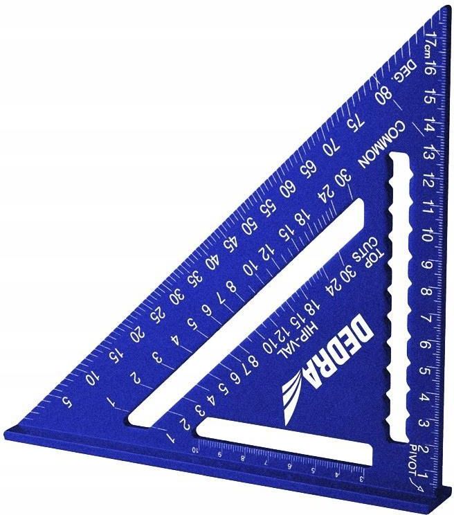 DEDRA Kątownik ciesielski 180mm, ML2070 Charakterystyka produktu: Kątownik ciesielski DEDRA ML2070 to narzędzie używane w pracach stolarskich i ciesielskich, służące do pomiaru oraz oznaczania kątów, a także nachylenia elementów drewnianych. To narzędzie znajdzie zastosowanie zarówno u doświadczonego profesjonalisty, jak i u zwykłego majsterkowicza – jest więc idealne dla wszystkich, którzy zajmują się pracami związanymi z obróbką drewna. Kątownik ciesielski wyposażony jest w precyzyjne podziały kątowe, co umożliwia dokładne ustalanie miary kątów. Jest to szczególnie ważne np. podczas prac związanych z produkcją mebli na wymiar, gdzie dokładność i precyzja mają kluczowe znaczenie. Kątownik DEDRA ML2070 będzie także niezwykle przydatny przy cięciu, łączeniu oraz montażu elementów drewnianych zapewniając równość i dokładność wykonywanych prac. Dane techniczne: Materiał wykonania: aluminium Wymiary: 180x180x260 mm Waga: 180 g Kolor: granatowy + biały Nr katalogowy: ML2070