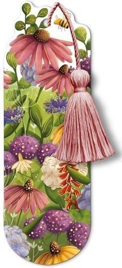 Złocona zakładka wykonana z grubego kartonu ozdobiona kolorowym chwostem.