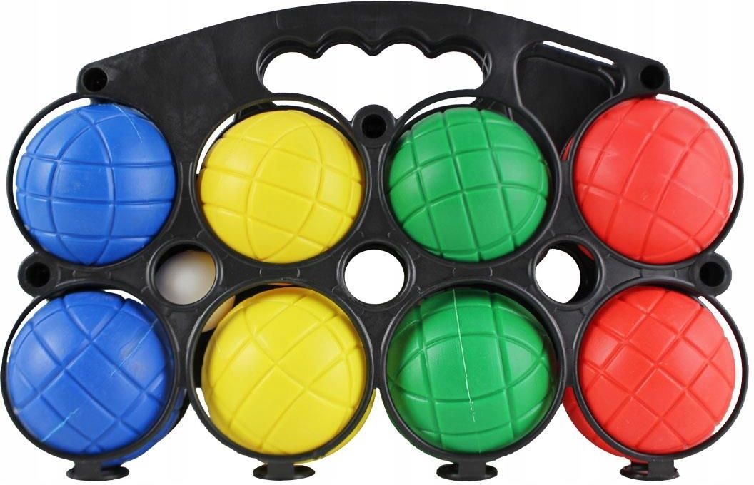 Kule do gry 8 szt. - Boule, Bule, Petanque MASTER Baw się świetnie ze znajomymi, rodziną albo przyjaciółmi przy grze w kule! To doskonały sposób na aktywne spędzanie wolnego czasu. Gra w bule / gra w boule / gra w kule - bardzo popularna we Francji, zręcznościowa gra towarzyska. Polega na rzucaniu z wytyczonego okręgu kul. Zainteresowanie grą w boule stale rośnie także w Polsce, głównie w parkach i niewybetonowanych skwerach. Petanque można rozgrywać na każdej płaskiej powierzchni, umożliwiającej swobodną grę (trawa, asfalt, parkiet). Każda para kul ma inny kolor w celu łatwiejszego przypisania kul do poszczególnych graczy. Kule wypełnione są wodą. Skład zestawu: 8 plastikowych kul wypełnionych wodą - średnica 7 cm, 4 kolory Waga jednej kuli: ok. 0,16 kg 1 plastikowa kula o średnicy ok. 3.0 cm - "świnka" Waga zestawu: ok. 1,35 kg Szczegółowa instrukcja montażu/obsługi jeżeli jest wymagana zostanie dołączona do wysyłki.Mimo dołożenia wszelkich starań nie gwarantujemy, że publikowane dane techniczne oraz zdjęcia (odcienie, wzorki) nie zawierają braków lub błędów. Ewentualne błędy nie mogą być podstawą do roszczeń.Wszystkie oferowane przez nas towary pochodzą z renomowanych hurtowni sportowych i są produktami oryginalnymi wprowadzonymi na Polski rynek zgodnie z przepisami prawa.