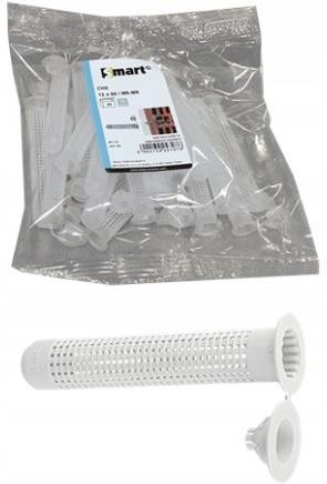 Tuleja siatkowa 12x60mm kotwa chemiczna 10 szt. Tuleja siatkowa plastikowa perforowana do kotew chemicznych przy mocowaniu w pustych przestrzeniach. ZALETY umożliwia stosowanie zapraw kotwiących w podłożach otworowych wygoda montażu Dane techniczne Średnica otworu: 12 mm Min. głębokość zakotwienia: 60 mm Sposób użycia Żywicę wprowadza się do tulei siatkowej całkowicie ją wypełniając, następnie wkładamy do niej szpilkę gwintowaną. W ten sposób żywica wyciska się poprzez otwory w tulei siatkowej, powodując gromadzenie się jej na zewnętrznej części. Żywica jednocześnie "wpasowuje się" w otwory w podłożu i po stwardnieniu tworzy kliny. Wytrzymałość tego rodzaju połączeń w podłożach z pustymi przestrzeniami jest praktycznie uzależniony jedynie od wytrzymałości materiału w którym kotwimy. Wytrzymałość połączeń w podłożach z pustymi przestrzeniami tak jak i w przypadku kotwienia w podłożach betonowych, można zwiększać poprzez głębsze kotwienie.