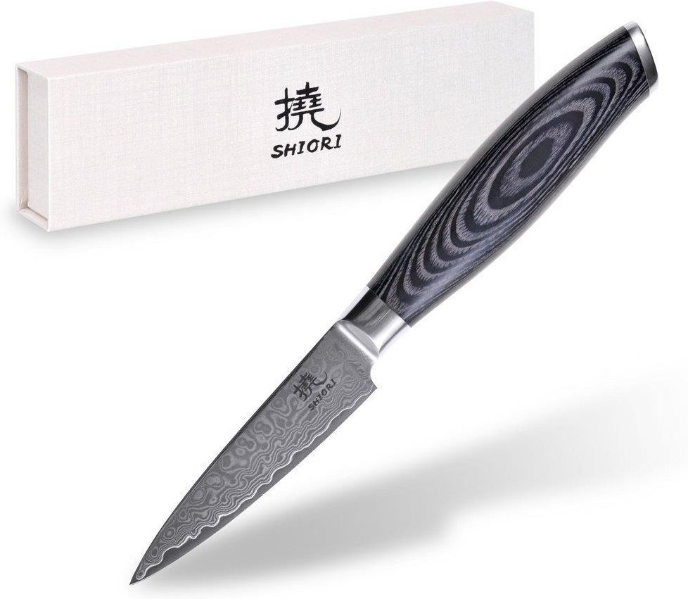 SHIORI Kuro Shōto - nóż do obierania Nóż Shiori z serii 撓 Kuro Shōto, przeznaczony do obierania owoców i warzyw. Nóż jest wyjątkowo wygodny w użytkowaniu i bardzo dobrze leży w dłoni. Posiada niewielkie, wąskie, szpiczaste ostrze dzięki któremu możemy wykonać profesjonalne cięcia dekoracyjne. …