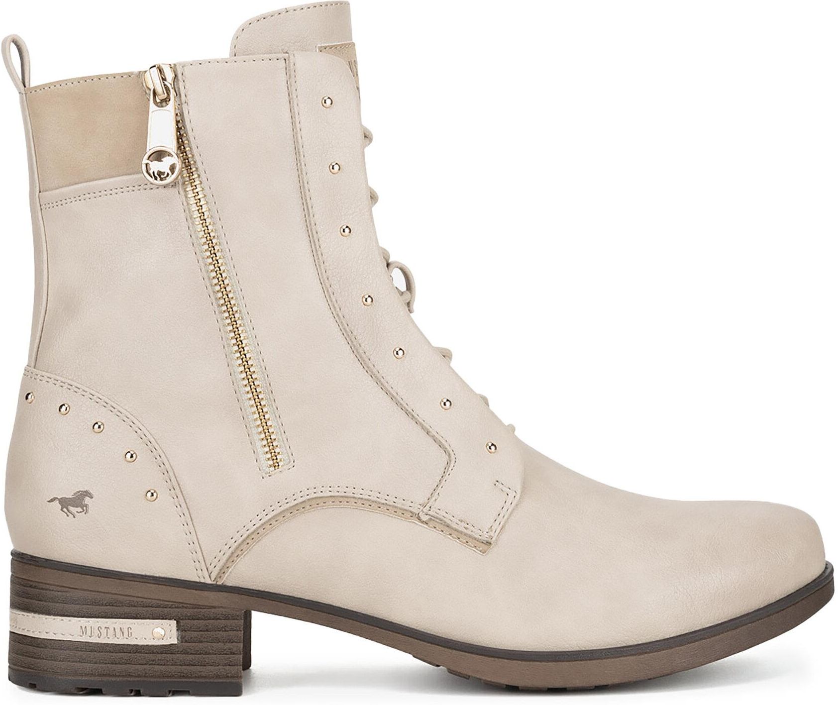Dodaj rockowy akcent do swoich stylizacji dzięki damskim trzewikom marki Mustang! Wykonane z wysokogatunkowego tworzywa syntetycznego, zachwycają nie tylko jakością, ale i wyrazistym designem. Ozdobione modnymi ćwiekami, dodadzą Twojemu lookowi charakteru, a solidny obcas typu klocek zapewni komfort podczas codziennego użytkowania. Dzięki ociepleniu Twoje stopy będą chronione nawet w chłodniejsze dni, a praktyczne zapięcie na suwak ułatwi szybkie zakładanie.