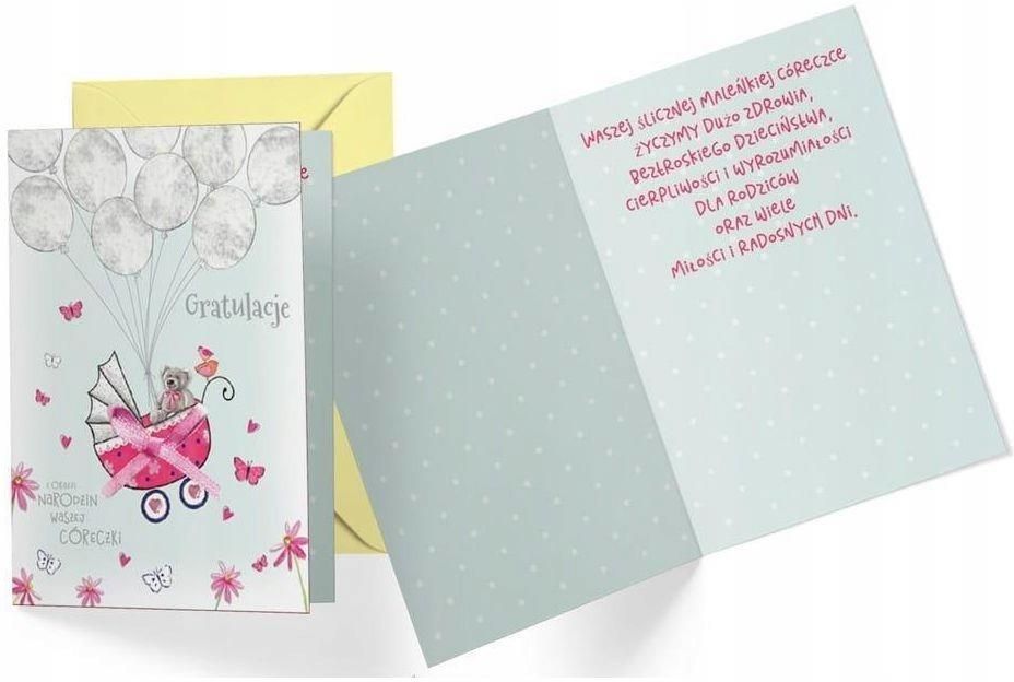 Karnet B6 Narodziny córeczki Upominek Dla BLISKIH Kartka z ŻYCZENIAMI Super Producent: Kukartka Kartka B6 z ozdobnej serii Dream Cards - nieduża, ale robi wrażenie dzięki atrakcyjnej kolorystyce i ciekawym zdobieniom. To idealny wybór łączący przyjazną cenę z jakością. Cechy szczególne wielkość: B6, 16.6 x 11.7 cm po złożeniu koperta: w zestawie, kolorowa zdobienia: różnorodne, bogate (w zależności od wzoru: przyklejane dekoracje, elementy biżuteryjne, odstawniki, brokat metaliczne folie, tłoczenia itp.) Dlaczego warto kupić tę kartkę okolicznościową Piękna oprawa dla Twoich życzeń Doda uroku każdemu podarunkowi Podkreśli każdą chwilę Wykonana z wysokiej jakości materiałów Idealnie sprawdzi się jako dodatek do prezentu Kartka jest doskonałym sposobem na przekazanie wyjątkowych życzeń Oferuje elegancję i styl, które sprawią, że Twoje życzenia zostaną w sercu na zawsze Kartka okolicznościowa to wspaniałe opakowanie Twoich najgłębszych uczuć i emocji To również świetny sposób, aby przekazać najserdeczniejsze życzenia i ciepłe słowa