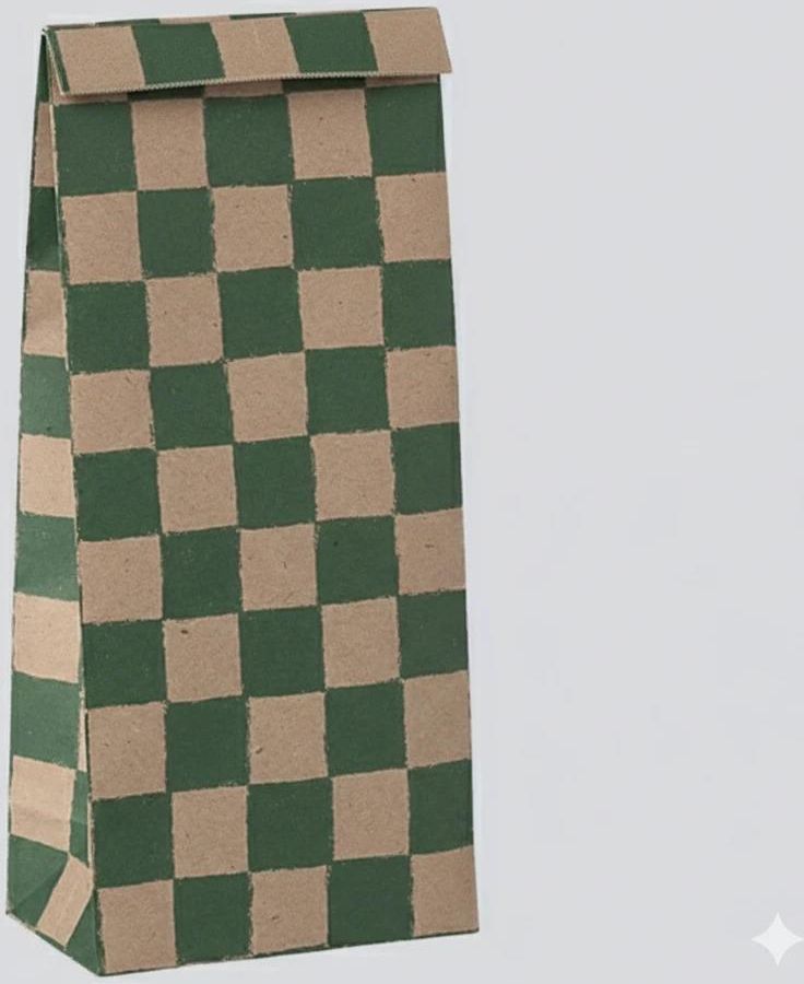 Zielona Krata - Mała Torebka Papierowa Prezentowa Tutka - 26,5 x 9 x 5,5 cm - Maileg Chełmża