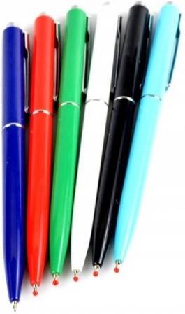 Automatyczny długopis olejowy z wymiennym wkładem w kolorze niebieskim. Plastikowa obudowa w 7 kolorach. Wygodny i funkcjonalny. Ze względu na smukły kształt idealnie nadaje się do kalendarzy i organizerów. Doskonale sprawdzi się zarówno w szkole, w domu, jak i w biurze. Idealny pod nadruki reklamowe. Metalowy klips umożliwiający wpięcie w dogodnym miejscu. Wysokiej jakości niklowana, srebrna końcówka. Pisze miękko, pozostawiając gładkie i równe linie. Grubość linii pisania: 0,7 mm. Pakowane w display mix kolorów po 36 sztuk. Kod wkładu: 406187.