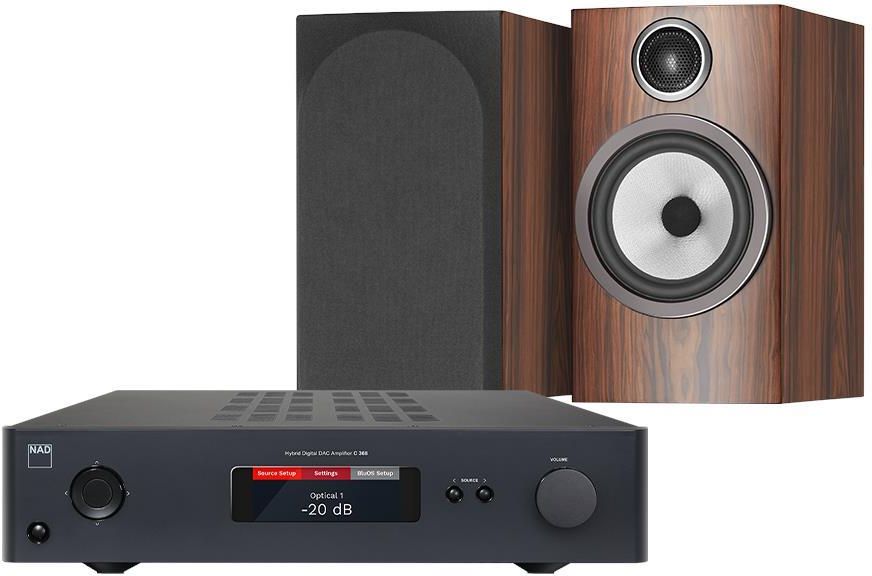 Zestaw składający się ze wzmacniacza zintegrowanego NAD C368 i głośników Bowers & Wilkins 706 S3