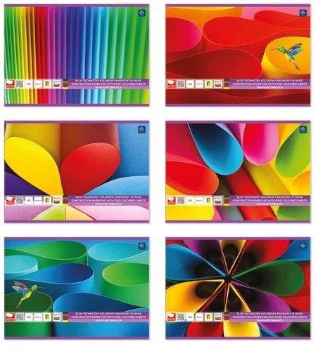 Blok techniczny kolorowy Doskonale nadaje się do prac plastycznych w domu i szkole jak również do profesjonalnego ozdabiania i dekorowania zaproszeń. Produkt idealny do wszelkich prac kreatywnych. Kolorowe okładki przyciągające uwagę dzieci. Blok techniczny barwiony w masie przeznaczony zarówno do rysunku ołówkiem, węglem, kredkami, farbkami jak i do wyklejania i ozdabiania przedmiotów. Barwiony w masie dzięki czemu kolory są żywsze a po roztarganiu nie ma białych strzępów. Wysokiej jakości papier. Całość na podkładzie z grubej tektury. Cena za zeszyt. (20 sztuk kartek kolorowych) Format: A5 Gramatura: 180 g Kolory kartek w zeszycie: kremowy, jasny żółty, ciemny żółty, pomarańczowy, ciemny pomarańcz, czerwony, bordo, jasny róż, różowy, lawendowy, fiolet, błękit, niebieski, niebiesko-szary, jasna zieleń, ciemna zieleń, limonka, brązowy, szary, czarny. Uwaga: Rodzaj okładki przy wysyłce wybierany jest losowo.