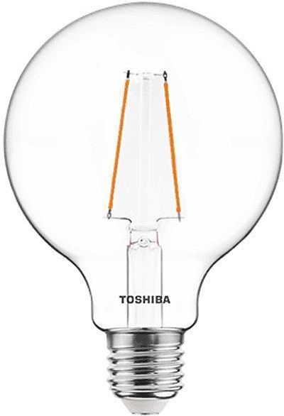 Żarówka LED Toshiba Filament G95 806lm 7W 2700K E27. Żarówka LED o mocy 7W, strumień świetlny 806lm, temperatura 2700K, mocowanie E27, klasa energetyczna E.