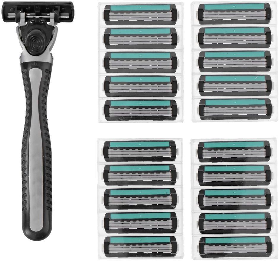Maszynka do golenia + zestaw uzupełniający to gwarancja skutecznego usuwania zarostu! W zestawie jest 21 końcówek z potrójnymi ostrzami i paskiem nawilżającym.