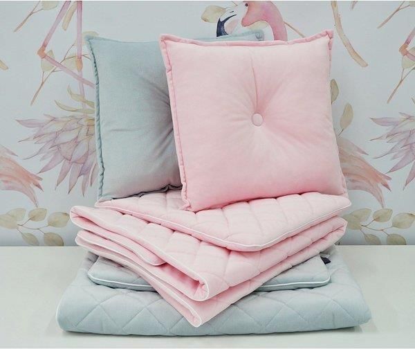 Aksamitna poduszka w kształcie kwadratu to piękne uzupełnienie dziecięcego pokoju.