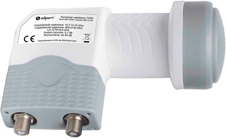 Konwerter satelitarny - podwójny - TWIN Producent i model: DPM LNB-TWIN 78607 Zastosowanie produktu pozwoli na oglądanie w tym samym czasie różnych programów, a także ich nagrywanie. Konwerter cechuje niski poziom szumów, co sprawia, że jego praca pozostaje niemalże pozbawiona zakłóceń. Urządzenie posiada plastikową obudowę, która jest wytrzymała i przez długi czas może zachować oryginalny wygląd. Produkt wykończono w białym kolorze, w związku z czym estetycznie się prezentuje. Dostępne są również konwertory wyposażone w pojedyncze oraz poczwórne gniazdka. Specyfikacja Wymiary produktu 16 x 6.5 x 6.5cm Długość opakowania 6.5cm Waga brutto 0.275kg Napięcie 13 - 18V Informacje dodatkowe śr. mocowania: 40mm; sygnał wejściowy: pasmo dolne 10.7-11.7GHz, pasmo górne 11.7-12.75GHz; częstotliwość generatora: pasmo dolne 9.75GHz, pasmo górne 10.6GHz Materiał wykonania plastik
