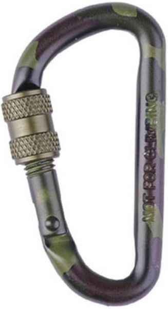 Karabińczyk aluminiowy w kamuflażu woodland, z dodatkowym zabezpieczeniem przed otwarciem w postaci specjalnej nakrętki, nakręcanej na dźwignię. Umożliwia w szybki i łatwy sposób montaż elementów oporządzenia, a antypoślizgowa faktura ułatwia użytkowanie w rękawicach. Uwaga! Karabińczyk nie jest przystosowany do zastosowania w asekuracji wspinaczkowej ani w innych zadaniach, które wiążą się z dużym obciążeniem. Dane techniczne Kamuflaż: woodland Materiał: aluminium Długość: 60 mm Waga: 10 g Producent: Mil-Tec, Niemcy