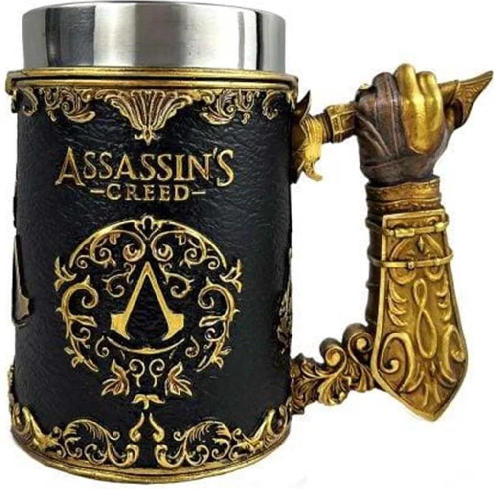 Step into the shadows of history with the Officially Licensed Assassin's Creed Through the Ages Tankard. This expertly crafted piece pays tribute to the legendary assassins who have shaped history over the centuries. With intricate gold detailing that embodies the essence of the Assassin's Creed legacy, this tankard is a true work of art. Cast from high-quality resin and hand-painted with precision, it allows you to relive the adventures of past assassins with every look. A perfect addition for any fan, this tankard is a tribute to the timeless saga of Assassin's Creed.