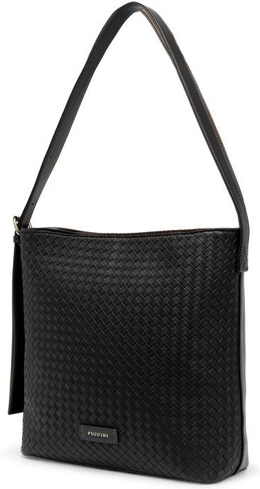 Torebka damska na ramię pleciona ze skóry ekologicznej czarna Torebka damska PUCCINI została zaprojektowana z myślą o wszystkich miłośniczkach najnowszych trendów. Model jest wykonany ze skóry ekologicznej z designersko zaplecionym frontem. Idealnie sprawdzi się w codziennym użytkowaniu: w pracy, na uczelni, czy na zakupach. Najważniejsze cechy produktu: wymiary zewnętrzne: 30 x 33 x 12 cm materiał: 100% poliuretan podszewka: 100% poliester sposób noszenia: do ręki, na ramię wysokość uchwytu: 36 cm Długość uchwytu: 110 cm główna komora zamykana na zamek wewnątrz dwie kieszonki otwarte jedna kieszeń zamykana na zamek stopki ochronne waga: 0,70 kg elementy metalowe: złote 2 lata gwarancji producenta