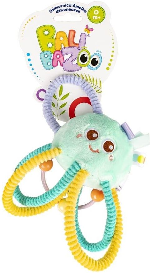 Milutka ośmiorniczka to pluszak, który zajmie rączki malucha sensoryczną zabawą! Amelka kryje w sobie dzwoneczek, wydający wesoły dźwięk, przy każdym potrząśnięciu zabawką. Ośmiornicę zdobią cztery kolorowe, fakturowane obręcze, które są elastyczne i dopasowane do rączek malucha, co ułatwia najmłodszym chwytanie zabawki. Amelka uszyta została z materiałów o zróżnicowanych fakturach, dzięki czemu pozwala najmłodszym rozwijać zdolności poznawcze, zachęcając ich tym samym do odkrywania świata za pomocą zmysłów. Produkt przeznaczony jest dla dzieci od dnia narodzin. Cechy produktu: dzwoneczek; elastyczne, fakturowane obręcze; materiałowe metki; zróżnicowane faktury materiałów; wiek: 0m+. Wiek: 0m+ Wydawnictwo: Balibazoo Opakowanie: folia, Grupa wiekowa: 0m+