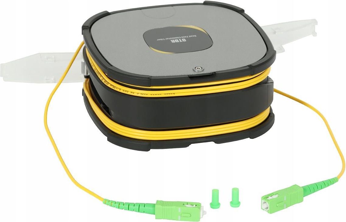 Włókno rozbiegowe 500m Ultimode FLC-500-SCA-SCA Kod towaru: FLC-500-SCA-SCA Włókno rozbiegowe 500 m SC/APC-SC/APC ULTIMODE FLC-500-SCA-SCA Włókno jednomodowe G.652D Długość: 500 m Złącza: SC/APC - SC/APC Funkcjonalna obudowa Włókno rozbiegowe przeznaczone do wykonywania pomiarów reflektometrycznych w instalacjach światłowodowych. Pozwala na wyeliminowanie strefy martwej reflektometru na początku odcinka pomiarowego. Stosowane jako "dobiegówka" pozwala również na prawidłowy pomiar ostatniego złącza w torze optycznym. Włókno jednomodowe w standardzie G.652D o długości 500 m pozwala na wykonanie pomiarów z krótkimi i średnimi czasami trwania impulsu. Długość ta jest często wymagana przy pomiarach wykonywanych dla operatorów telekomunikacyjnych. Włókno zakończone jest obustronnie wtykami SC/APC, dzięki czemu stosować je można bez dodatkowych przejściówek z reflektometrem ULTIMODE OR-20-S3S5-iSMV L5830. Włókno zamknięte jest w funkcjonalnym etui zapewniającym wygodę użytkowania i bezpieczeństwo przyłączy podczas przechowywania i transportu. Wymiary: 110x110x48 mm. Konstrukcja rozbiegówki umożliwia szybką i łatwą wymianę złącza w przyszłości. Długość przyłączy zakończonych wtykami wynosi 1,5 m. Dane techniczne: Rodzaj towaru Włókno rozbiegowe Włókno typ Jednomodowe standard G.652D długość 500 m + 5...15 m EIOR 1310 nm 1.466 1550 nm 1.467 Długość przyłączy 1,5 m Złącze 1 SC/APC Złącze 2 SC/APC Rozmiar etui 110 x 110 x 48 mm