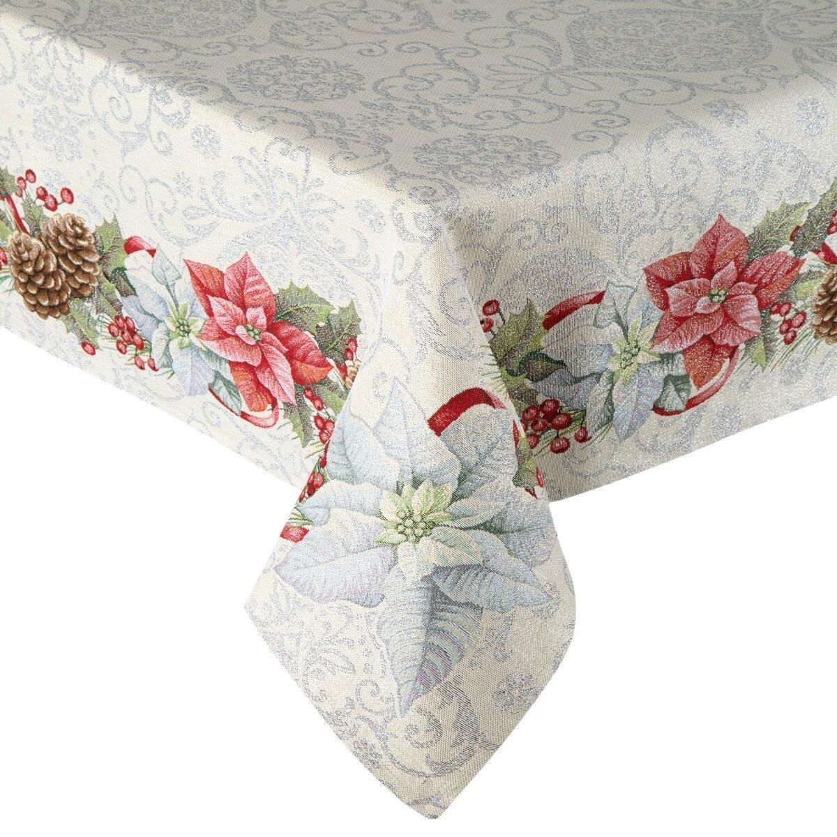 Eurofirany Obrus Dekoracyjny Świąteczny 100X100 Beżowy Srebrny Gwiazda Betlejemska Chodzież
