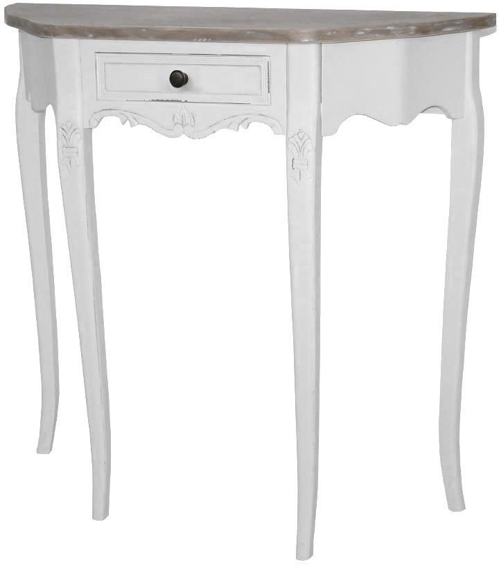 Biała konsola Rimini White w stylu prowansalskim z ciemnobrązowym blatem, rzeźbieniami i giętymi nóżkami. Idealna do eleganckich wnętrz! Konsola Rimini White biała z ciemnobrązowym blatem szuflada gięte nóżki Konsola Rimini White – Klasyczna Elegancja z Nutą Kontrastu Konsola Rimini White to wyjątkowy mebel, który harmonijnie łączy w sobie klasyczną elegancję z subtelnym kontrastem. Jasna, ręcznie malowana konstrukcja w kolorze bieli zestawiona z ciemnobrązowym blatem tworzy efektowną całość, doskonale wpisującą się w aranżacje w stylu prowansalskim, klasycznym oraz shabby chic. Wykonana z wysokiej jakości drewna paulowni i MDF, konsola zachwyca precyzją wykonania i dbałością o detale. Praktyczna szuflada z ozdobnym metalowym uchwytem umożliwia przechowywanie drobnych przedmiotów, a delikatnie gięte nóżki dodają całości lekkości i elegancji. Uniwersalny design sprawia, że konsola Rimini White doskonale sprawdzi się zarówno w przedpokoju, salonie, jak i sypialni, nadając wnętrzu wyjątkowy charakter. Dzięki ręcznemu malowaniu każdy egzemplarz zyskuje niepowtarzalny wygląd, który podkreśla jego unikalność. Cechy Kontrastowe wykończenie: biały korpus z ciemnobrązowym blatem Praktyczna szuflada: ozdobny metalowy uchwyt i wygodne przechowywanie drobiazgów Stylowy design: gięte nogi dodające lekkości i elegancji Informacje techniczne: - Styl: prowansalski/boho - Materiał: Drewno paulowni, MDF - Uchwyty: metalowe - Wykończenie: ręcznie malowana - Idealna do: salonu, przedpokoju, sypialni - Rodzaj prowadnic: drewniane Wymiary konsoli -Wysokość: 80 cm - Szerokość: 80 cm - Głębokość: 30 cm Przemyślane detale Kontrastowe wykończenie – idealne połączenie bieli i ciemnobrązowego blatu Praktyczna szuflada – łatwy dostęp do przechowywanych przedmiotów Gięte nogi – nadają meblowi subtelny i elegancki wygląd STYL PROWANSALSKI KONSOLE ORAZ SZAFKI, CO WPROWADZĄ CIEPŁO PROWANSU DO TWOJEGO WNĘTRZA Wyrafinowane kształty, uwaga do szczegółów oraz przyjemne dla oka kolory. To jest styl prowansalski Array