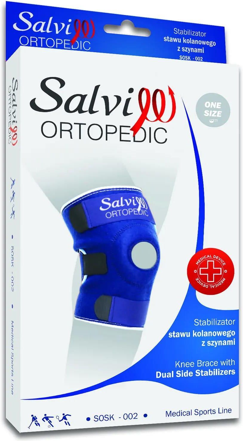 Salvi Ortopedic Wyrób medyczny w postaci stabilizatora stawu kolanowego z szyną. Produkt przeznaczony jest do stosowania w celu podtrzymywania uszkodzonych tkanek (stawy, więzadła, torebki stawowe i chrząstki).
