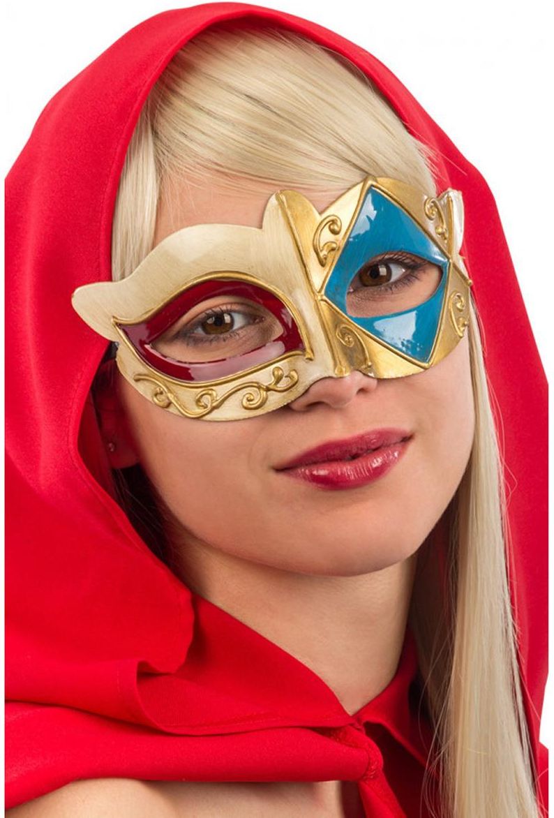 Maska karnawałowa złota Kod produktu: C01332 Maska wenecka złota wykonana z plastiku z czerwono-niebieskimi dodatkami. Świetnie nadaje się jako dodatek do stroju na karnawał czy imprezę noworoczną. Sprawdzi się także jako dekoracja i ozdoba sali czy pokoju. Opakowanie: 1 szt.