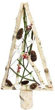 naturalna dekoracja minimalistyczny wygląd Prosta świąteczna dekoracja, wykonana z drewna w kształcie trójkąta, przypominająca choinkę Idealna do postawienia na półce. Wnosi do wnętrza bożonarodzeniowy nastrój komponując się z dekoracjami otoczenia. Alternatywa dla żywej choinki, jeśli nie masz zbyt wiele miejsca w mieszkaniu. W ramie umieszczone zostały gałązki drzew, szyszki, bombki i elementy dekoracyjne. Dzięki minimalistycznemu wyglądowi dopasuje się do każdego wnętrza przybierając jego charakter w zależności od koloru ściany i dodatków wokół.