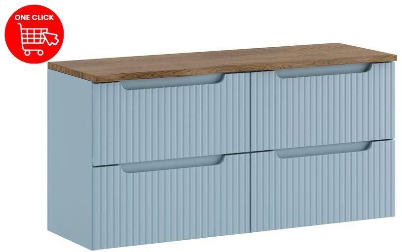 Szerokość: 120 Głębokość: 40 Struktura Frontów: Frezowane Ryfle Pionowe Kolekcja: Nova Denim Kolor Zestawu: Denim
