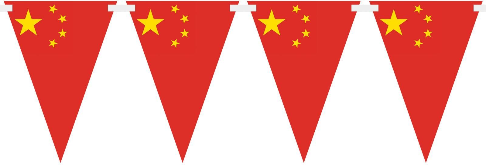Baner flagi trójkątne z zestawu Flagi Państw. Flaga: Chiny. Zestaw zawiera 14 flagietek papierowych i ok. 5 m tasiemki. Wymiary flagi: 10,5x15 cm.