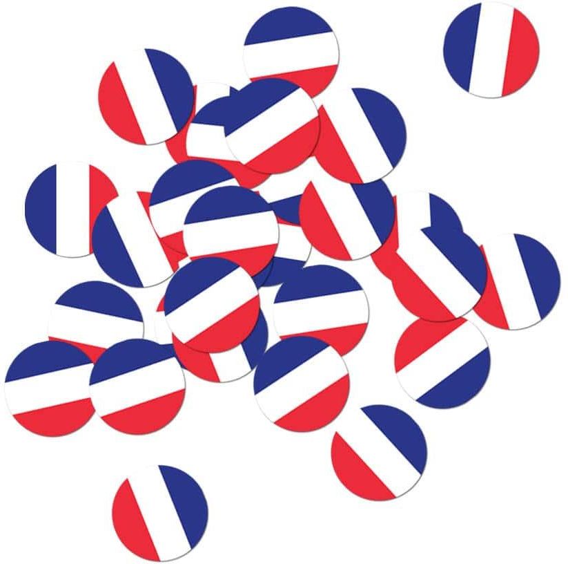 Konfetti papierowe z zestawu Flagi Państw. Konfetti z dwustronnym nadrukiem. Flaga: Francja. Średnica: 4 cm. Opakowanie: 36 szt.