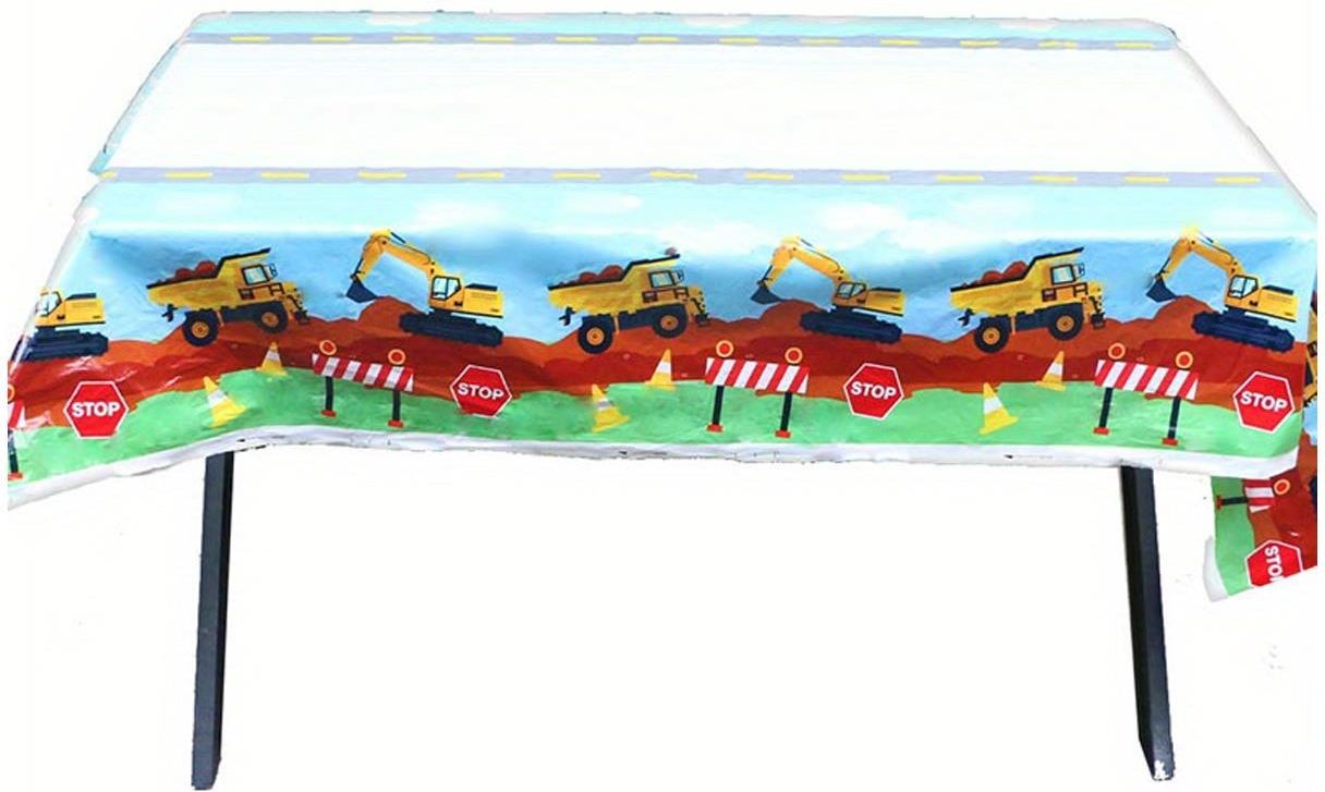 Foliowy obrus urodzinowy z zestawu Budowa. Wymiary: 108 x 180 cm. Opakowanie: 1 szt.