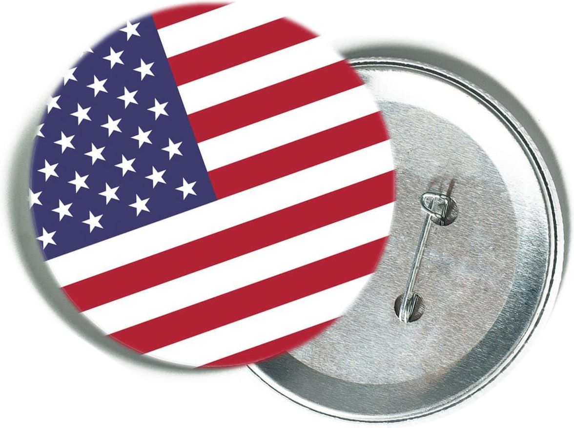 Plakietka na agrafce z zestawu Flagi Państw. Flaga: Stany Zjednoczone USA. Wielkość: 56 mm.