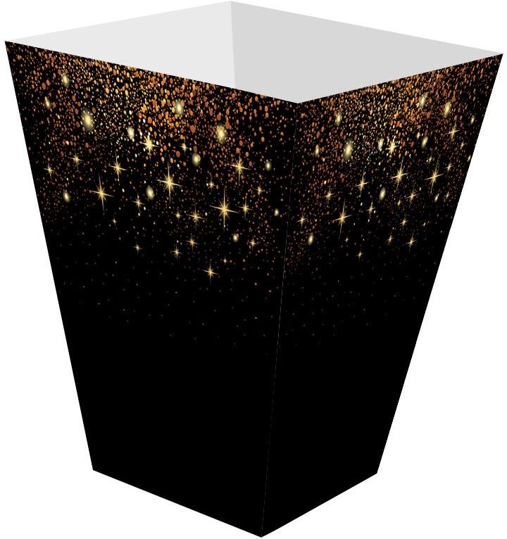 Pudełka na popcorn " Sparkling" - 6 sztuk Pudełka na popcorn Papierowe pudełka na popcorn jak i na inne słodkości . Wielkość: 9x9x13,5 cm Opakowanie: 6 sztuk Idealna dekoracja stołu podczas imprezy. Do kompletu można dokupić kubeczki, talerzyki, pudełka na chipsy.