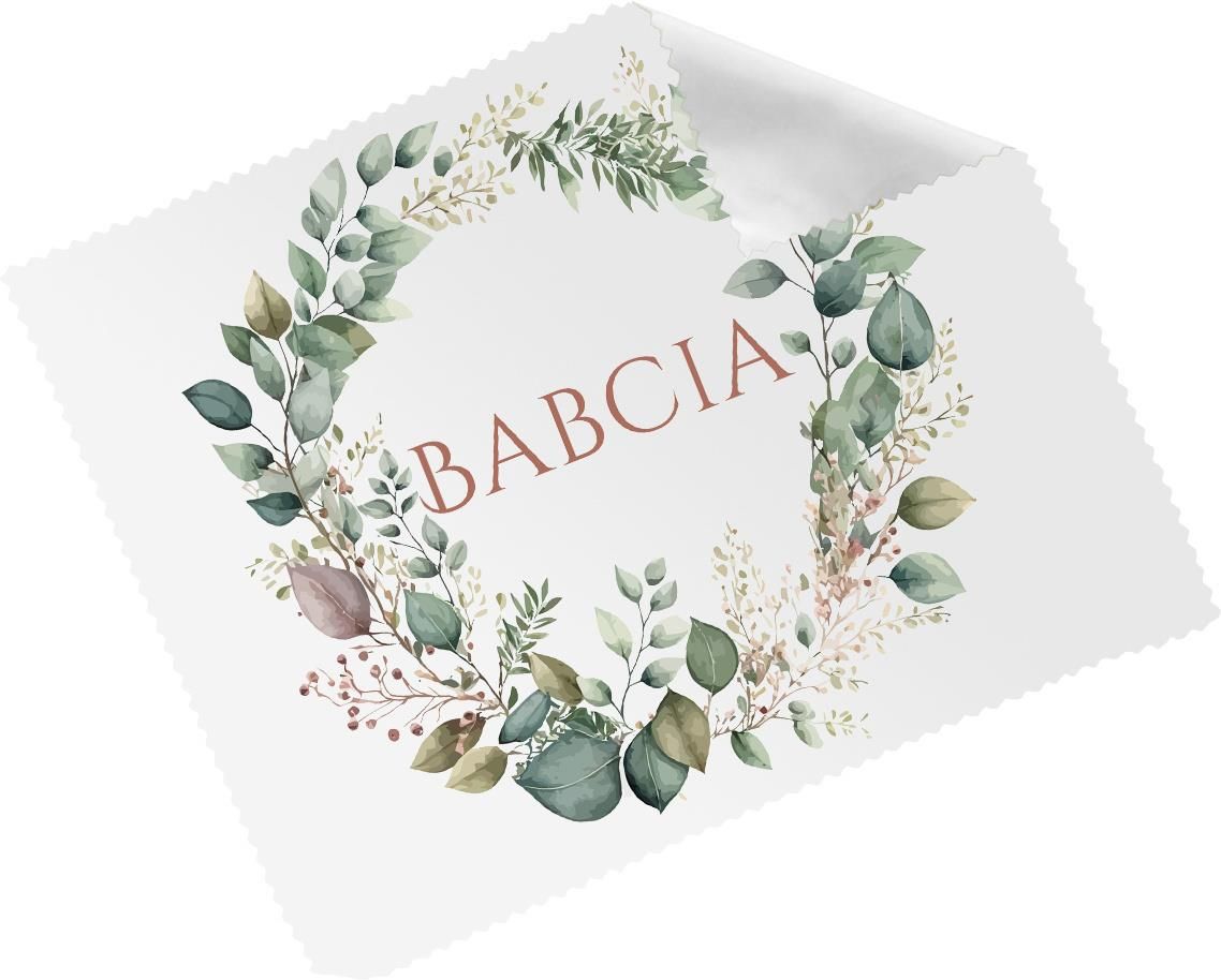 Ściereczka z białej mikrofibry do okularów dla babci na dzień babci. Wymiary: 10 x 15 cm.