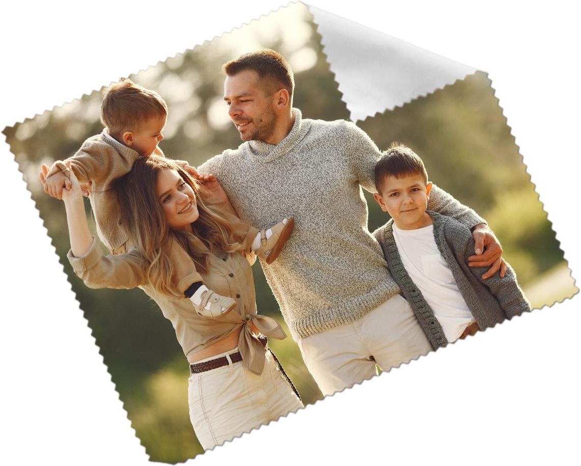Ściereczka z białej mikrofibry do okularów z własnym nadrukiem. Prosimy przesłać zdjęcie jakie ma być umieszczone na ściereczce. Wymiary: 10 x 15 cm. Idealny prezent na każdą okazję.
