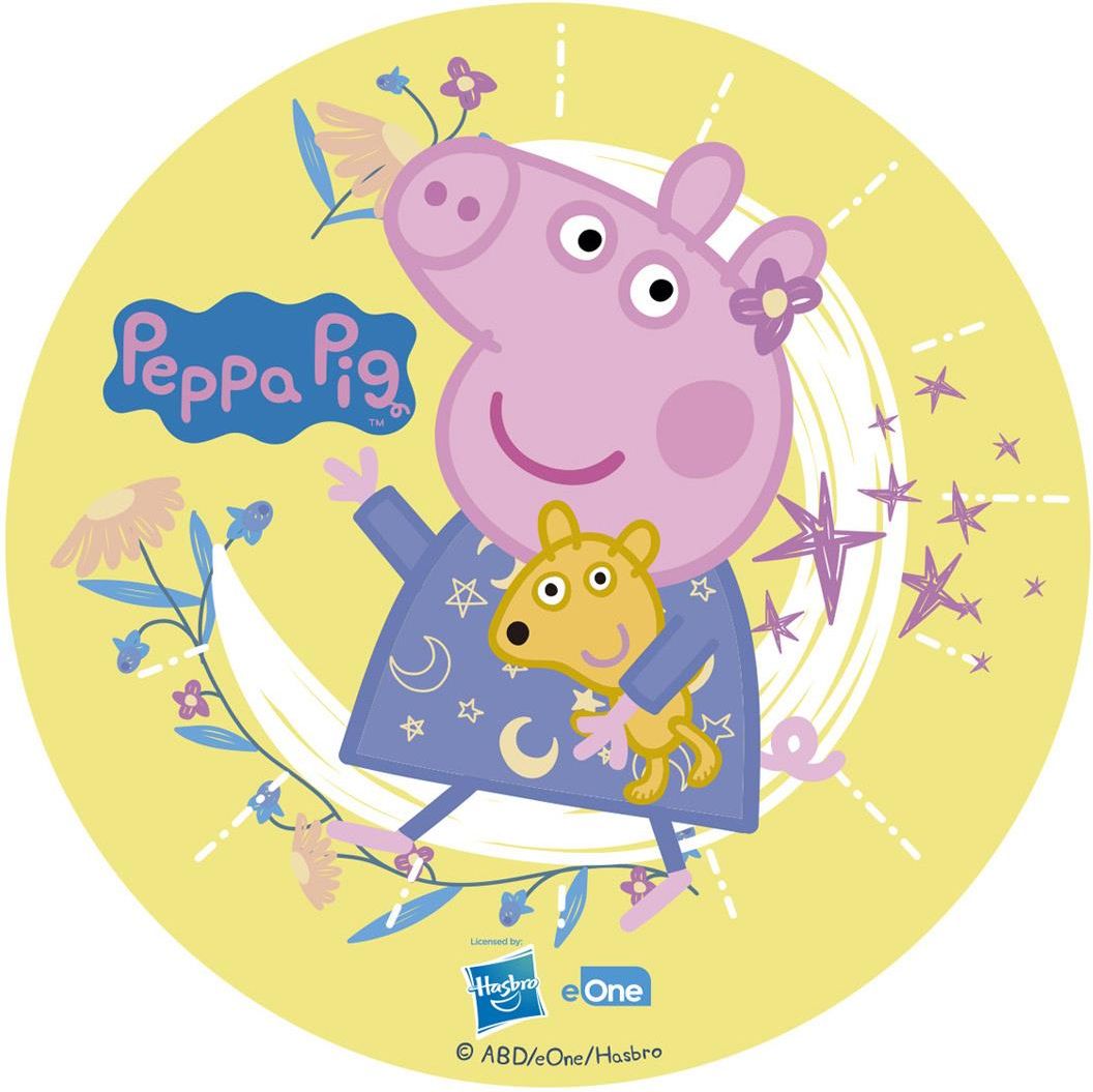 Dekoracyjny opłatek tortowy okrągły Świnka Peppa. Średnica: 15,5 cm. Opakowanie: 1 szt.