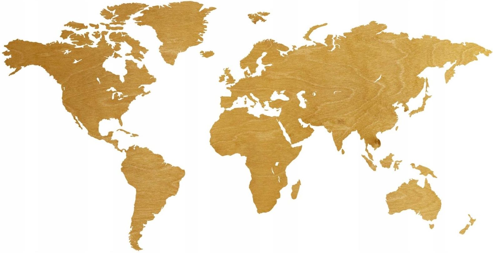 Dekoracja drewniana na ścianę Mapa świata Kod produktu: DS-20-003-06B Drewniana dekoracja na ścianę - mapa świata. Materiał: sklejka 6 mm. Wymiary mapy: 130 x 66 cm. Kolor: orzech włoski, malowane bejcą. Do zestawu dodajemy szablon dekoracji, aby prawidłowo nakleić ją na ścianę. Dekoracja cięta laserem, przez co przez pierwsze godziny może pachnieć typowym zapachem ciętego drewna. Komplet nie zawiera mocowania. Dekorację można przykleić za pomocą taśmy dwustronnej, na plastry do mocowania dekoracji itp. Niektóre drobne elementy wysp (np. Majorka), mogą być zbyt małe na dołączenie do zestawu oraz z powodu małych rozmiarów ciężkie do odpowiedniego naklejenia.