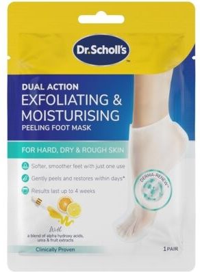 Maska Dr. Scholl's złuszcza i nawilża szorstką skórę stóp. Zapewnia regenerację oraz gładkość, która utrzymuje się do 4 tygodni.