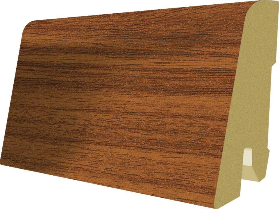 LISTWA PRZYPODŁOGOWA MDF L406 1026438 o wymiarach wynoszących 2400mm x 60mm x 17mm cechuje się wyjątkową estetyką wykonania. To praktyczny element, który wzbogaci dekorację całego pomieszczenia i cudownie wykończy podłogę. Skutecznie zakrywa szczeliny dylatacyjne i okablowanie przebiegające przy ścianie. Za sprawą struktury imitującej naturalne wzornictwo i kolorystykę drewna, prezentowany model polecany jest przede wszystkim do tradycyjnie urządzonych pomieszczeń. Produkt wykonano z trwałej płyty MDF odznaczającej się wodoodpornością i wytrzymałością na czynniki związane z codziennym użytkowaniem.