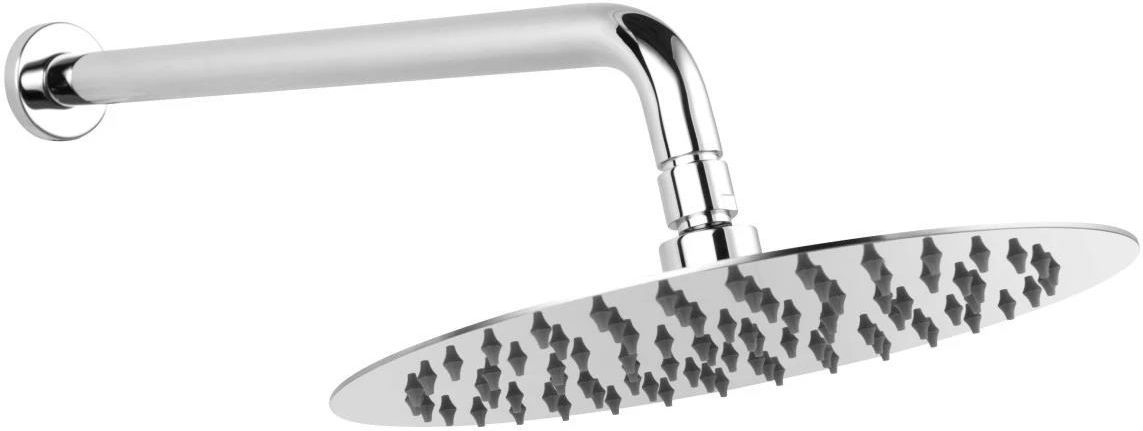 FERRO ZESTAW NATRYSKOWY OKRĄGŁY SLIM 250 mm Głowica talerzowa Slim o średnicy Ø250 mm – stal nierdzewna Ferro Easy Clean System – łatwe usuwanie kamienia wapiennego Ramię natrysku - 350 mm Przegub kulowy – regulacja kąta ustawienia głowicy talerzowej Przyłącze G1/2 Kolor chrom