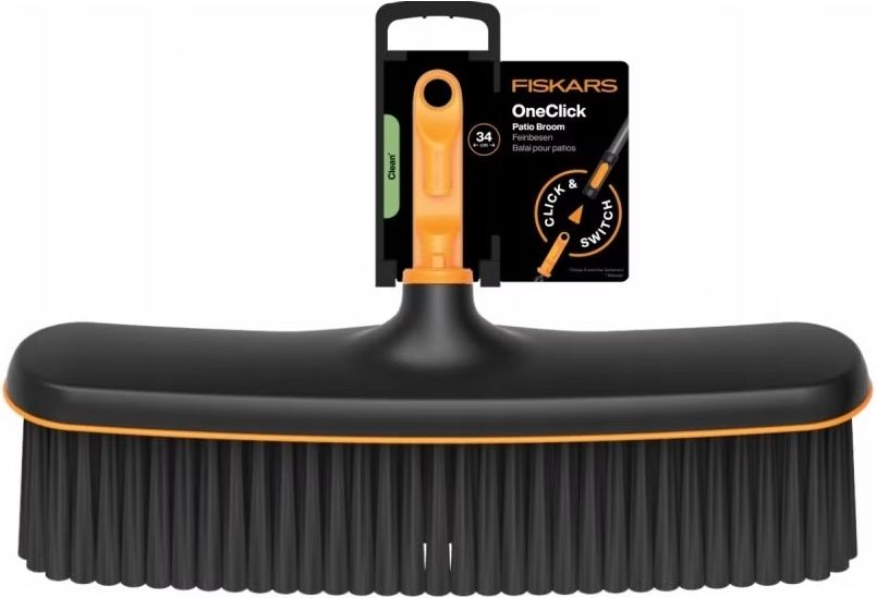 FISKARS ONECLICK Uniwersalna szeroka szczotka zmiotka — głowica robocza szer. 34 cm Fiskars ONECLICK Szczotka do zamiatania Szeroka szczotka to uniwersalna, funkcjonalna głowica robocza o szerokości 34 cm, dedykowana do dokładnego zamiatania powierzchni zewnętrznych wokół domu i w ogrodzie. Dzięki szerokiemu rozstawowi włosia oraz solidnej konstrukcji narzędzie umożliwia sprawne usuwanie liści, kurzu, piasku i innych zanieczyszczeń z tarasów, chodników, podjazdów czy patio. Głowica jest częścią modułowego systemu FISKARS ONECLICK, co pozwala na szybkie i pewne dopasowanie do kompatybilnego uchwytu. Zalety produktu szeroka głowica o roboczej szerokości ok. 34 cm – zwiększa efektywność zamiatania dużych powierzchni trwałe włosie dostosowane do zbierania piasku, kurzu, liści i innych zanieczyszczeń kompatybilność z systemem FISKARS ONECLICK – szybki montaż i wymiana głowic ergonomiczna konstrukcja – wygoda pracy bez nadmiernego obciążenia idealna do chodników, tarasów, podjazdów i innych utwardzonych powierzchni Zastosowanie produktu Szeroka szczotka FISKARS ONECLICK została zaprojektowana do utrzymania czystości wokół domu i w ogrodzie. Dzięki szerokiemu włosiu i solidnej konstrukcji doskonale sprawdza się w pracach porządkowych na dużych powierzchniach. zamiatanie tarasów, chodników i podjazdów usuwanie piasku, kurzu i liści z nawierzchni zewnętrznych porządkowanie strefy wejściowej i przestrzeni przy garażu sprzątanie schodów, ścieżek ogrodowych i patio Dlaczego warto wybrać głowicę FISKARS ONECLICK? To funkcjonalna i trwała głowica robocza od renomowanej marki Fiskars, która łączy efektywność zamiatania z wygodą obsługi systemu ONECLICK. Szerokie włosie zapewnia szybkie i skuteczne sprzątanie dużych powierzchni, a kompatybilność z uchwytami ONECLICK upraszcza montaż oraz przechowywanie narzędzi.