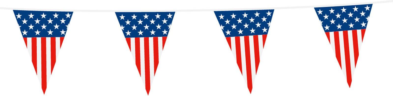 Baner foliowy z flagami Stanów Zjednoczonych Ameryki. Długość: 10 m. Wymiary flag: 20 x 30 cm. Opakowanie: 1 szt.