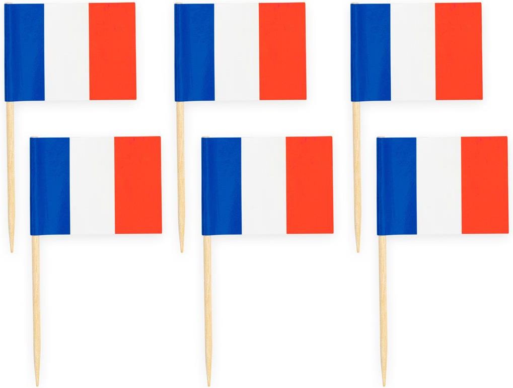 Wykałaczki, pikery z flagą narodową Francji. Wymiary flagi: 3,5 x 2,5 cm. Wysokość pikera: 6,5 cm. Opakowanie: 50 szt.
