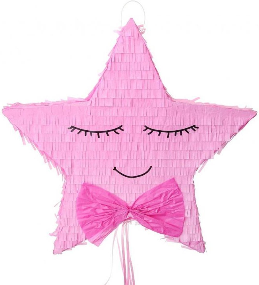 PINIATA GWIAZDKA RÓŻOWA Wysokość: 43 cm Szerokość: 45 cm Głębokość: 8 cm Materiał: papier Nadruk: gwiazda Ilość: 1 szt. Producent: Godan EAN: 5906639420910