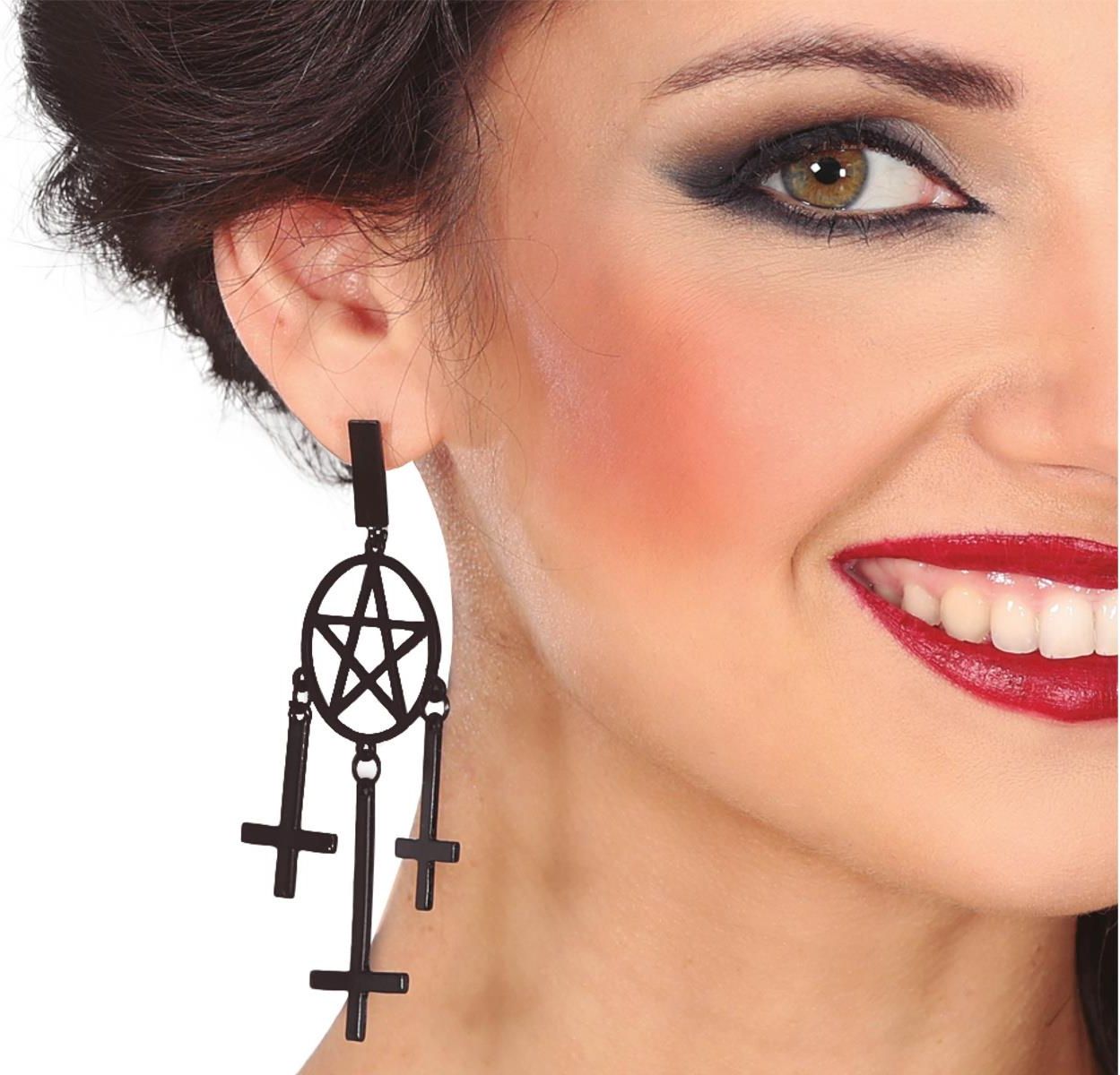 Kolczyki satanistyczne z pentagramami i odwróconymi krzyżami Oryginalny i odważny dodatek, który przyciąga spojrzenia! Czarne kolczyki z motywem pentagramów oraz odwróconych krzyży doskonale wpisują się w mroczny klimat Halloween, gotyckie stylizacje czy imprezy tematyczne. To idealny element …