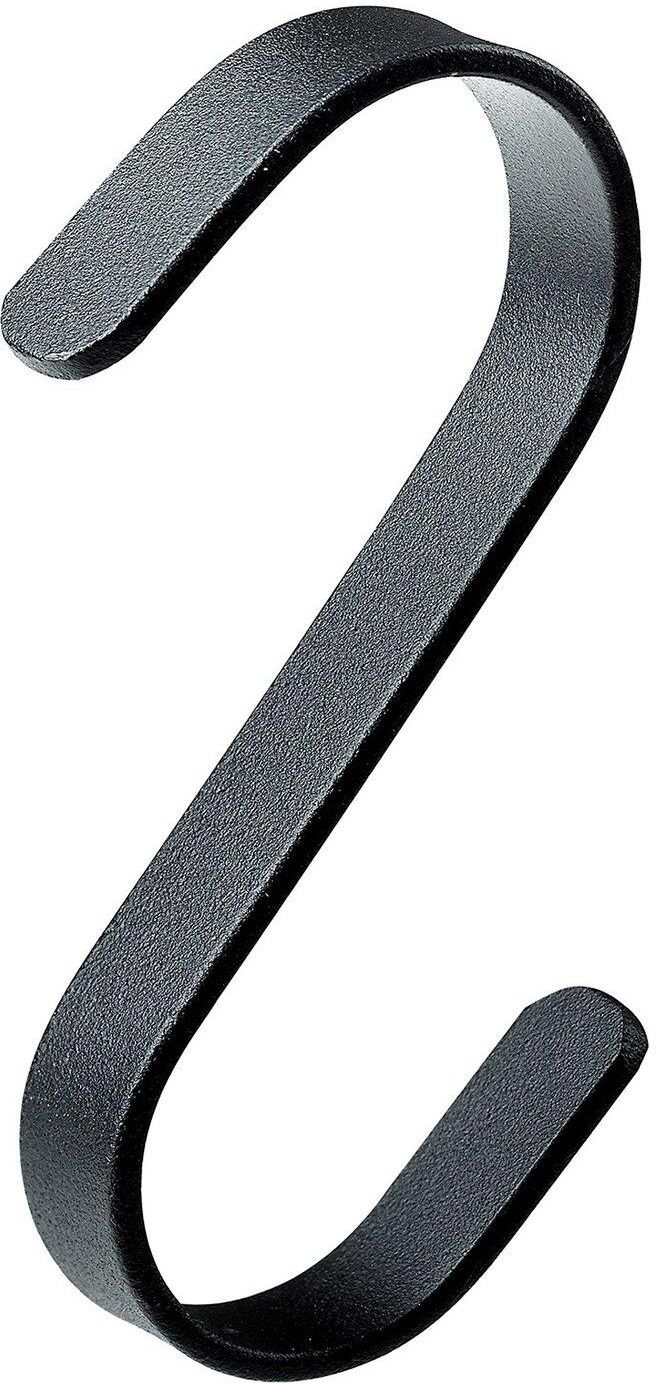 S-Hak płaski stalowy marki Hettich w kolorze czarnym matowym.Cztery sztuki wykonanych ze stali haków o wymiarach 75 x 65 x 10 mm.