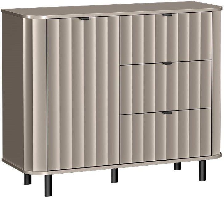 Komoda NOVADO Clay Gray łączy minimalistyczną formę z przytulną, glinianą szarością, która nadaje wnętrzu harmonii i miękkiego charakteru. Zaokrąglone krawędzie, smukłe czarne nogi oraz dekoracyjne ryflowane fronty podkreślają nowoczesny styl kolekcji. Neutralny odcień Clay Gray sprawia, że komoda …