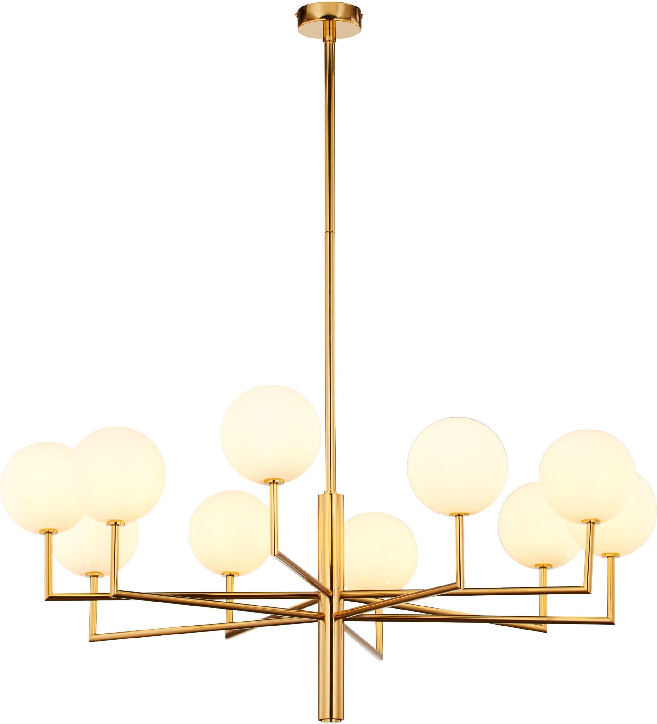 Lampa Sufitowa Wisząca FEME 10xG9 LED Żyrandol Nowoczesna Biało-Złota Jupiter Duży mosiądzowany żyrandol z rodziny FEME zachwyca wyjątkowym designem, który umiejętnie łączy modernizm ze stylem glamour. Błyszczący złoty kolor konstrukcji znakomicie komponuje się z jasnymi pomieszczeniami, ale może …