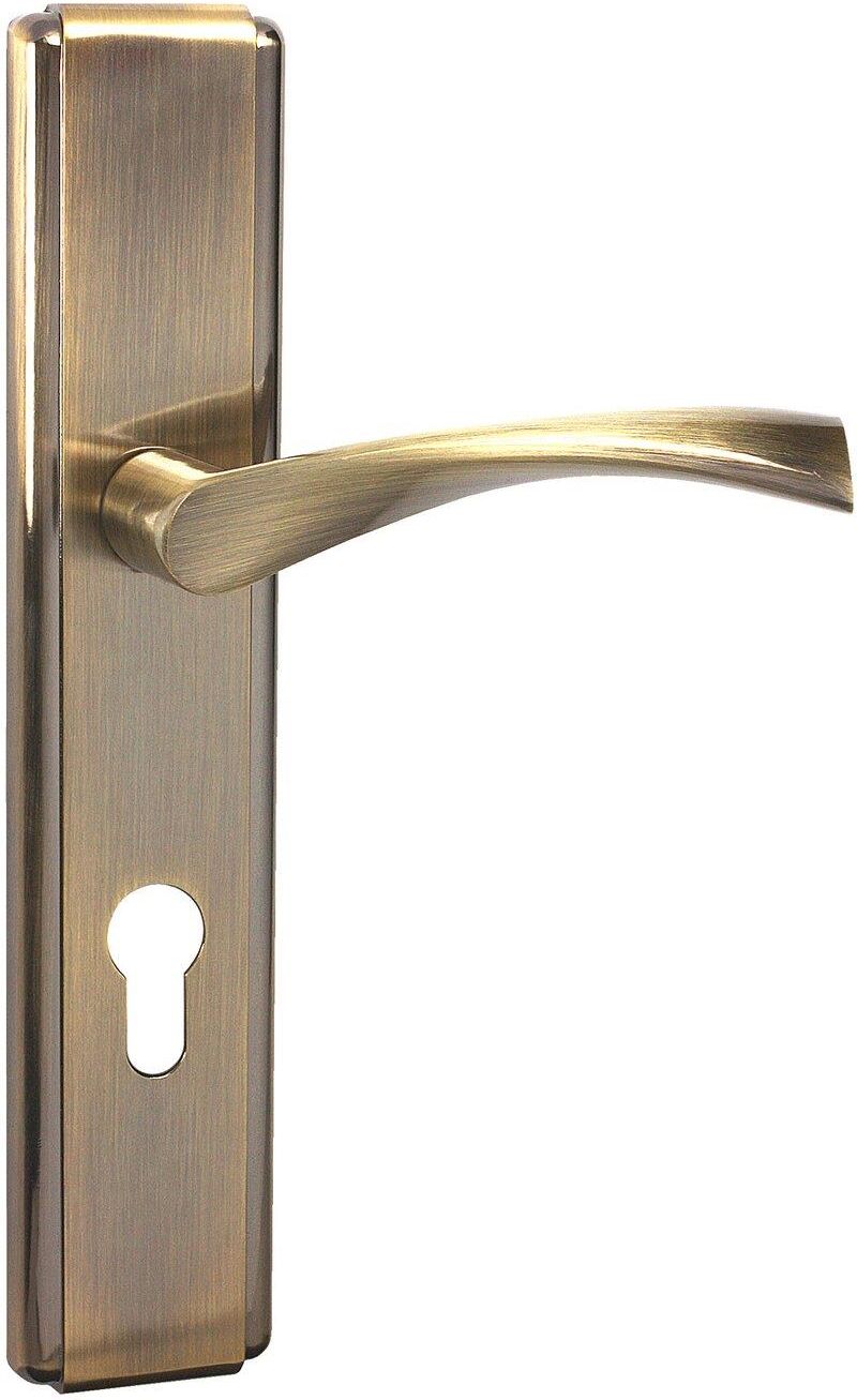 Klamka z szyldem Romana, prawa, marki Domino.Jest to klamka o wywiniętej formie osadzona w szyldzie z otworem na wkładkę bębenkową. Wykonana w stylu klasycznym, przeznaczona jest do drzwi zewnętrznych.Wysoka jakość materiałów i solidne wykonanie gwarantują wygodę użytkowania produktu przez długi czas.Wykończenia w kolorze brązu sprawiają, że klamka prezentuje się wyjątkowo elegancko.
